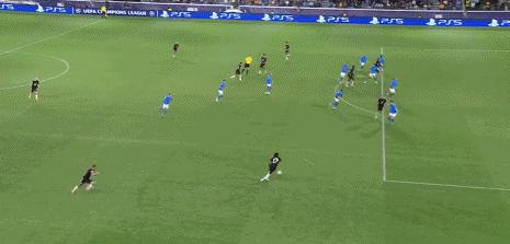 第9分鐘,差一點,凱恩倒鉤射門擊中門框彈出