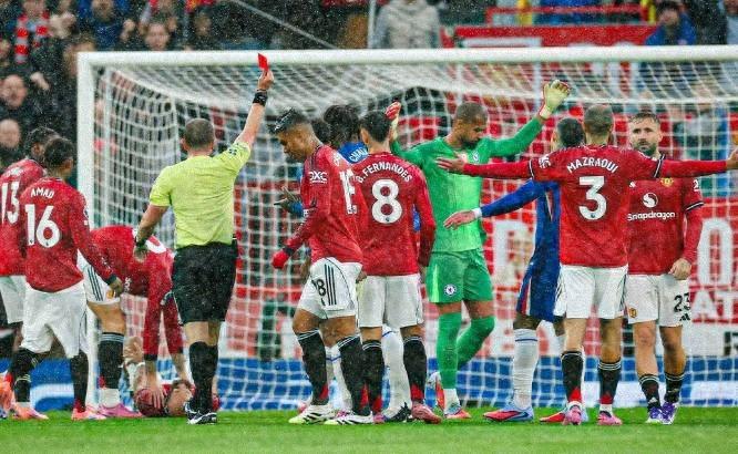 在曼聯2-1戰勝切爾西的比賽中,衝出禁區的桑切斯放倒了姆伯莫,隨後因破壞明顯進球機會被紅牌罰下。