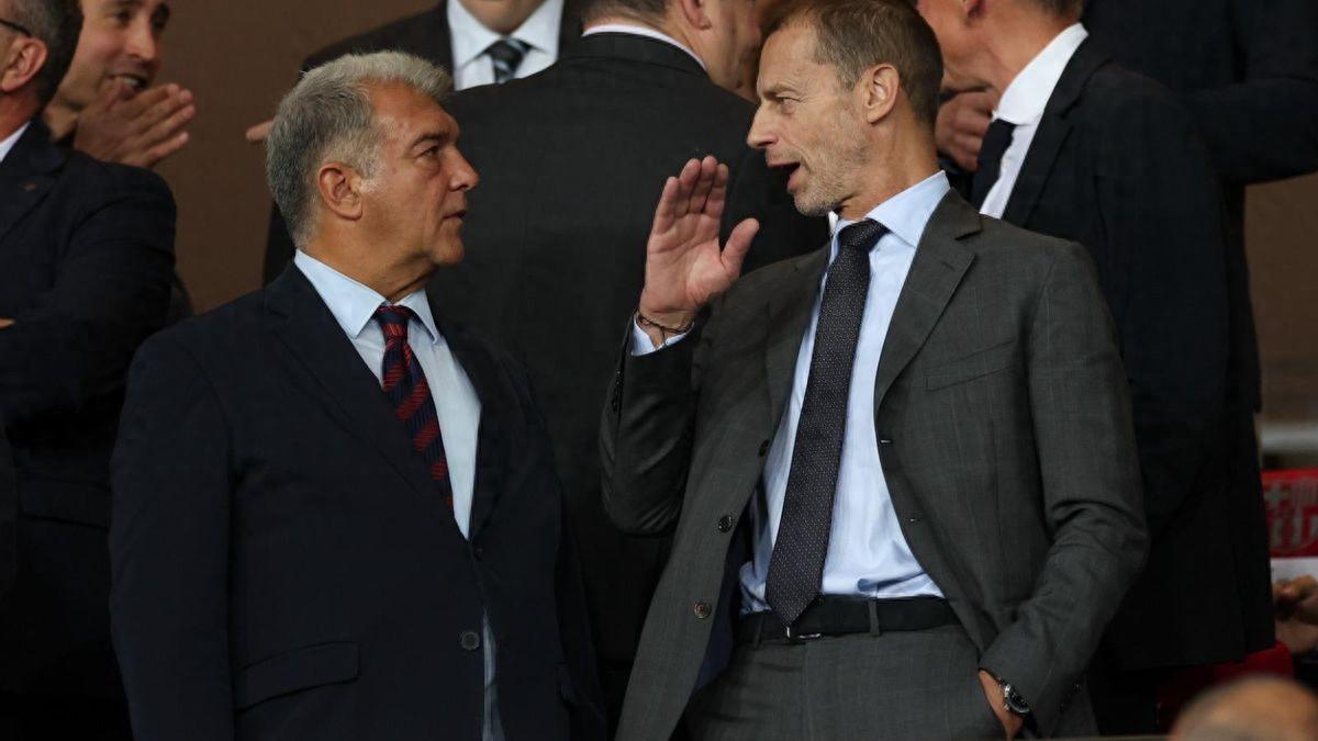 每體:拉波爾塔與切費林同框,巴薩與歐足聯關係有望緩和