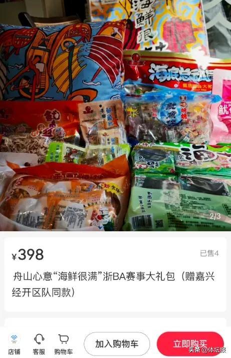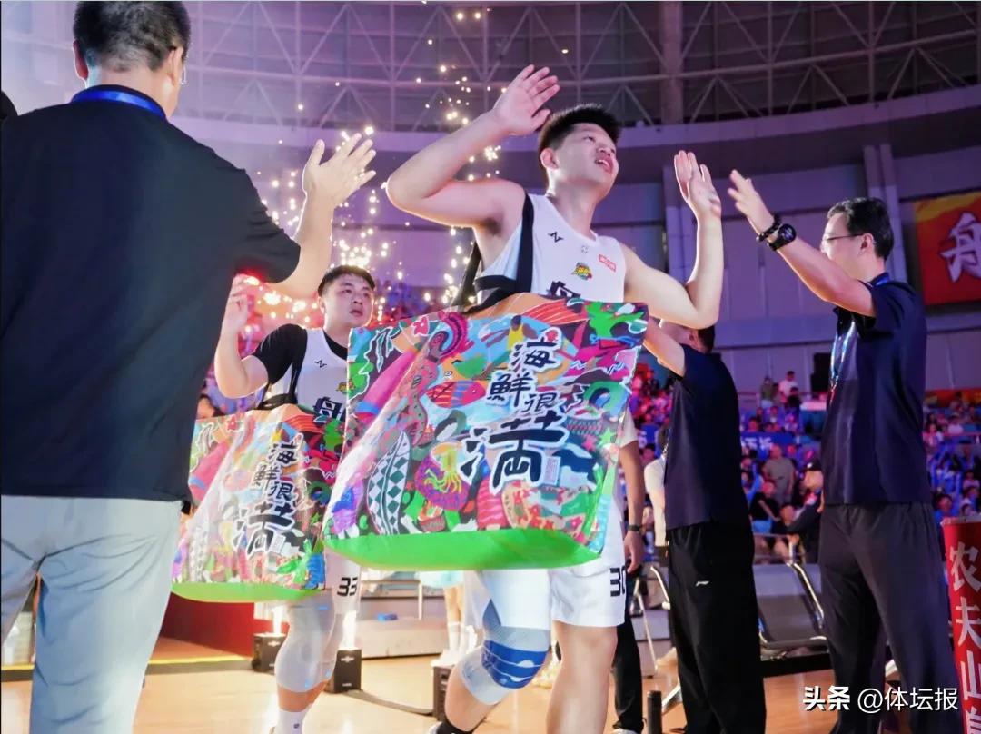 “浪尖爭霸,鮮行舟山”。9月27日,“浙BA”舟山主場迎戰杭州,在球員進場儀式上,一款名爲“海鮮很滿”的巨型禮包由舟山隊員揹着出場而引發熱議。