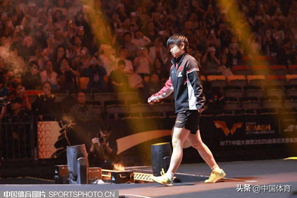 中國體育訊 10月2日,2025世界乒乓球職業大聯盟(WTT)中國大滿貫在北京市石景山區首鋼園八極場進入第五個比賽日。在女單1/8決賽中,中國選手孫穎莎3比0戰勝隊友王曉彤,晉級八強。(中國體育圖片 白宇 攝)
