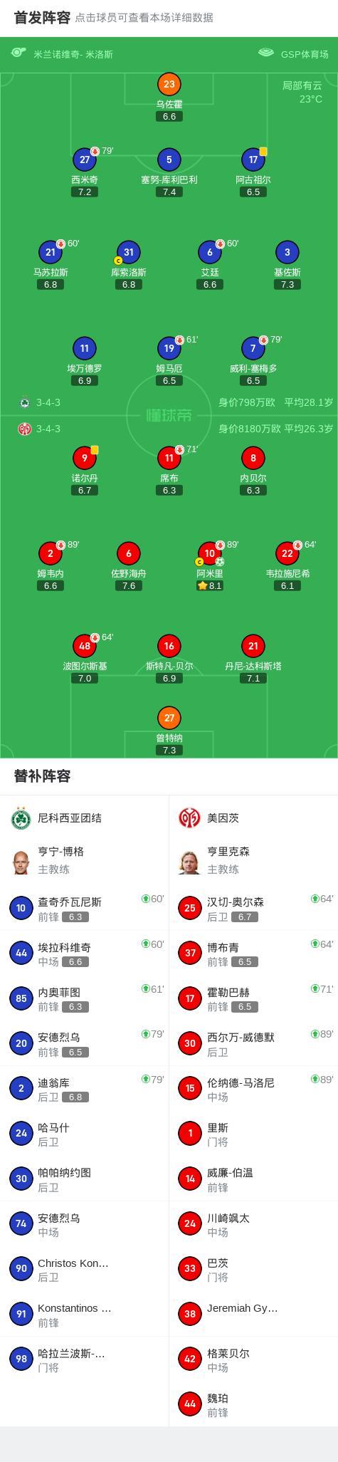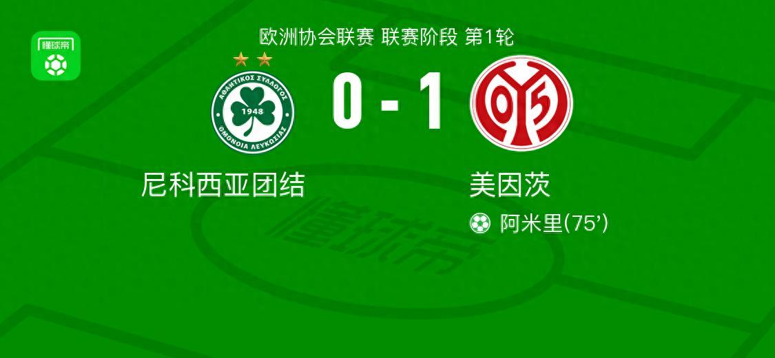 美因茨1-0尼科西亞團結,阿米里點射制勝