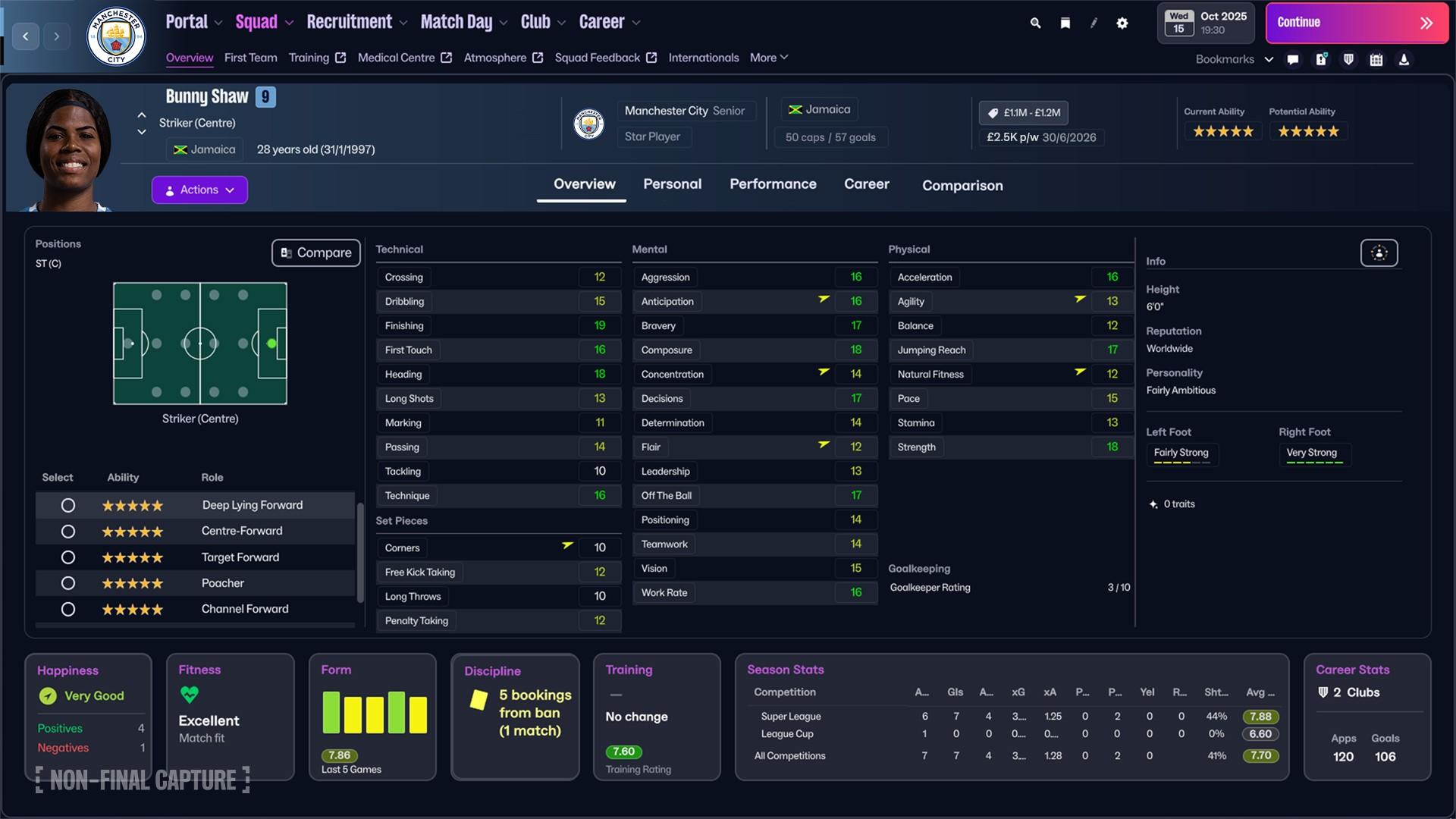 至於備受關注的女足,FM的女足與男足體系完全並行,雖然二者評價體系相同且每項能力值上限均爲20,但女足方面擁有完全獨立於男足的數據庫與能力值系統。經理可以選擇在男足與女足之間切換執教,也可以選擇開檔不加入女足聯賽,充分將遊戲體驗的選擇權交給了玩家。