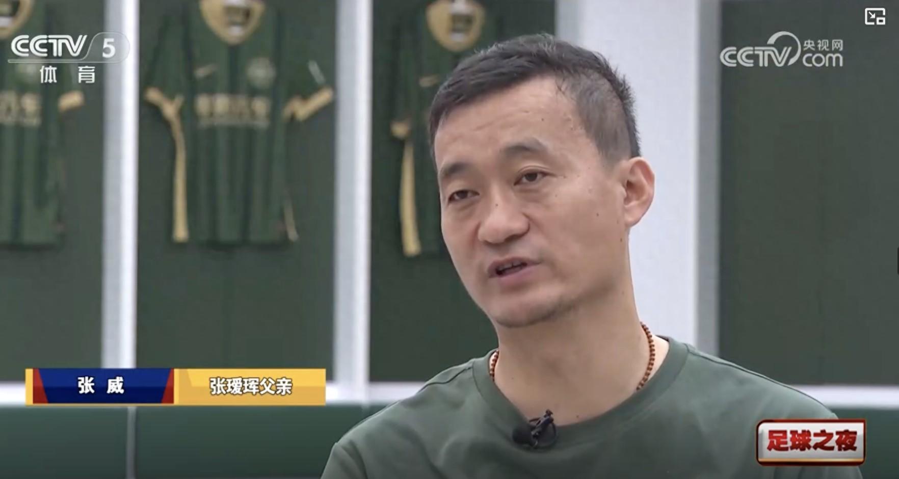 10月2日,足球之夜的節目裏,播出了對浙江隊張璦暉的父親張威的採訪。