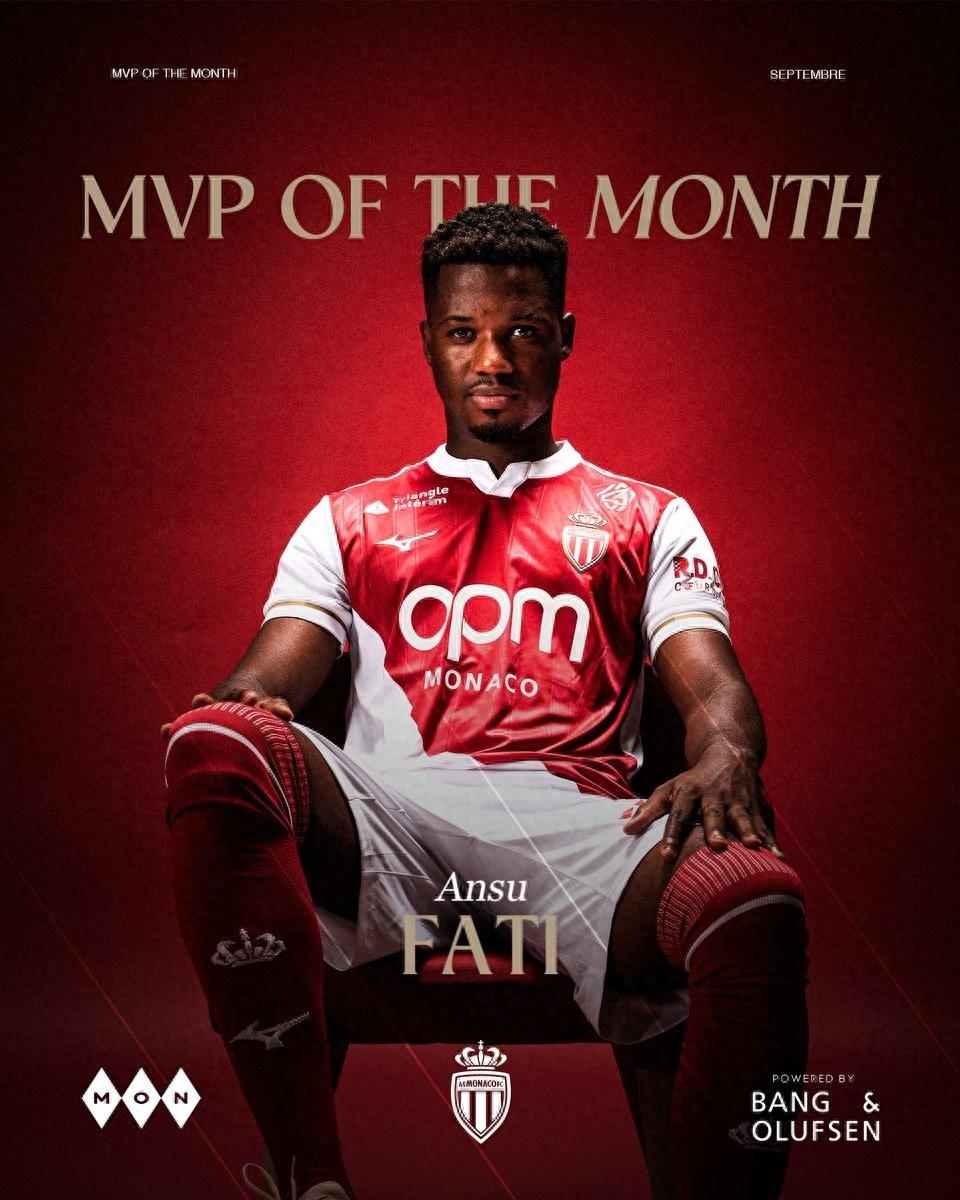 摩納哥官方宣佈,法蒂當選隊內9月最佳球員。