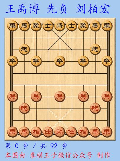 紅雙相竟失,十分危急,王禹博只得棄車砍炮,以解黑殺,隨後紅雙馬雙炮放手一搏,欲撲槽位,劉柏宏一個進馬入中,就地化解,是此92手,黑棋多車勝出,劉柏宏與許文章決戰。