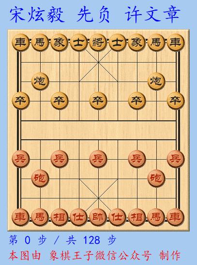 黑憑車雙馬炮四子之力,強攻紅棋車雙炮的防線,128手,黑一馬撲槽,下伏平炮和平車雙殺,紅棋告負,許文章勝出。