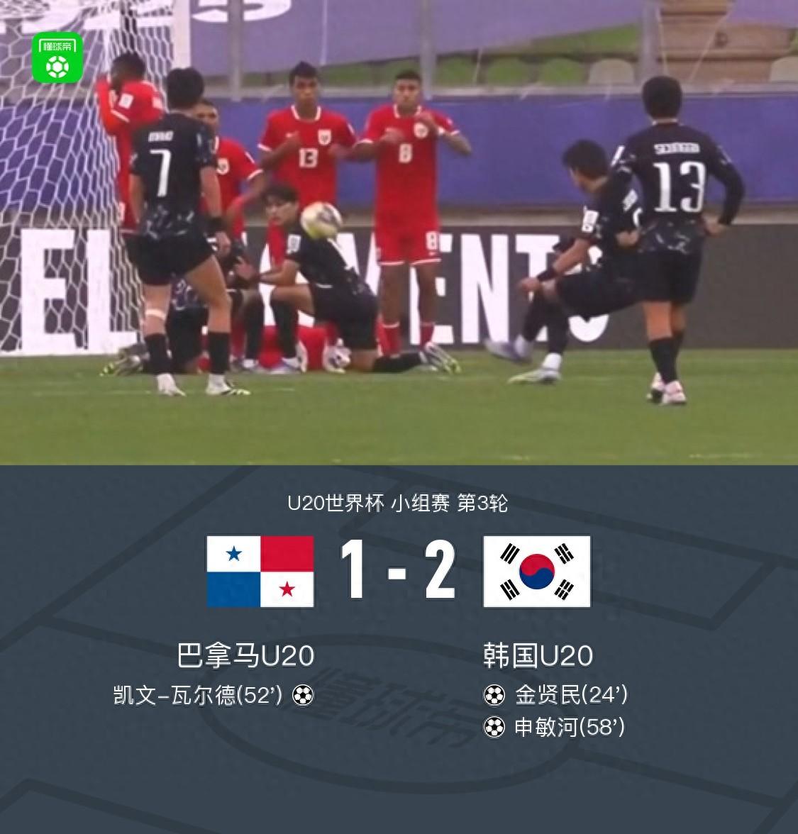 北京時間10月4日U20世界盃 小組賽 第3輪,巴拿馬U20對陣韓國U20。巴拿馬U20凱文-瓦爾德破門。韓國U20金賢民破門,申敏河破門。最終韓國U20 2-1巴拿馬U20。