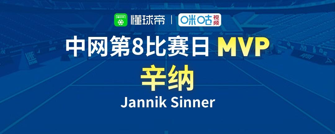 2025年中網第八比賽日的比賽全部結束,由懂球帝聯合咪咕體育評選的第八比賽日MVP評選結果出爐,辛納獲得最佳球員。