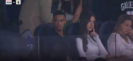 第18分鐘,鏡頭給到場邊,阿諾德看臺觀戰