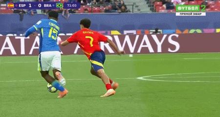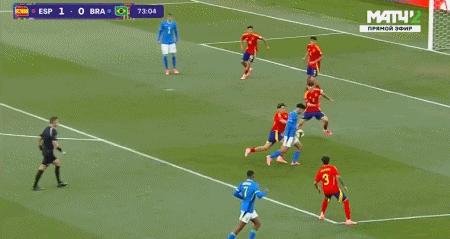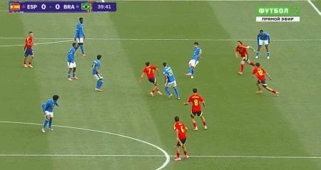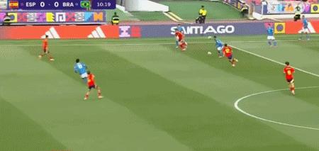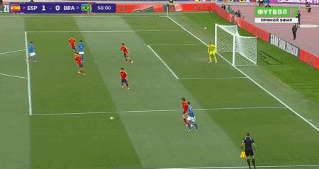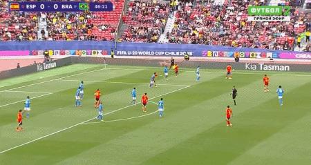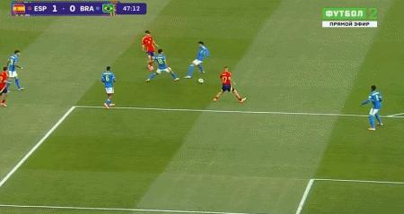 第47分鐘,加西亞助攻,布拉沃小角度破門,西班牙1-0巴西