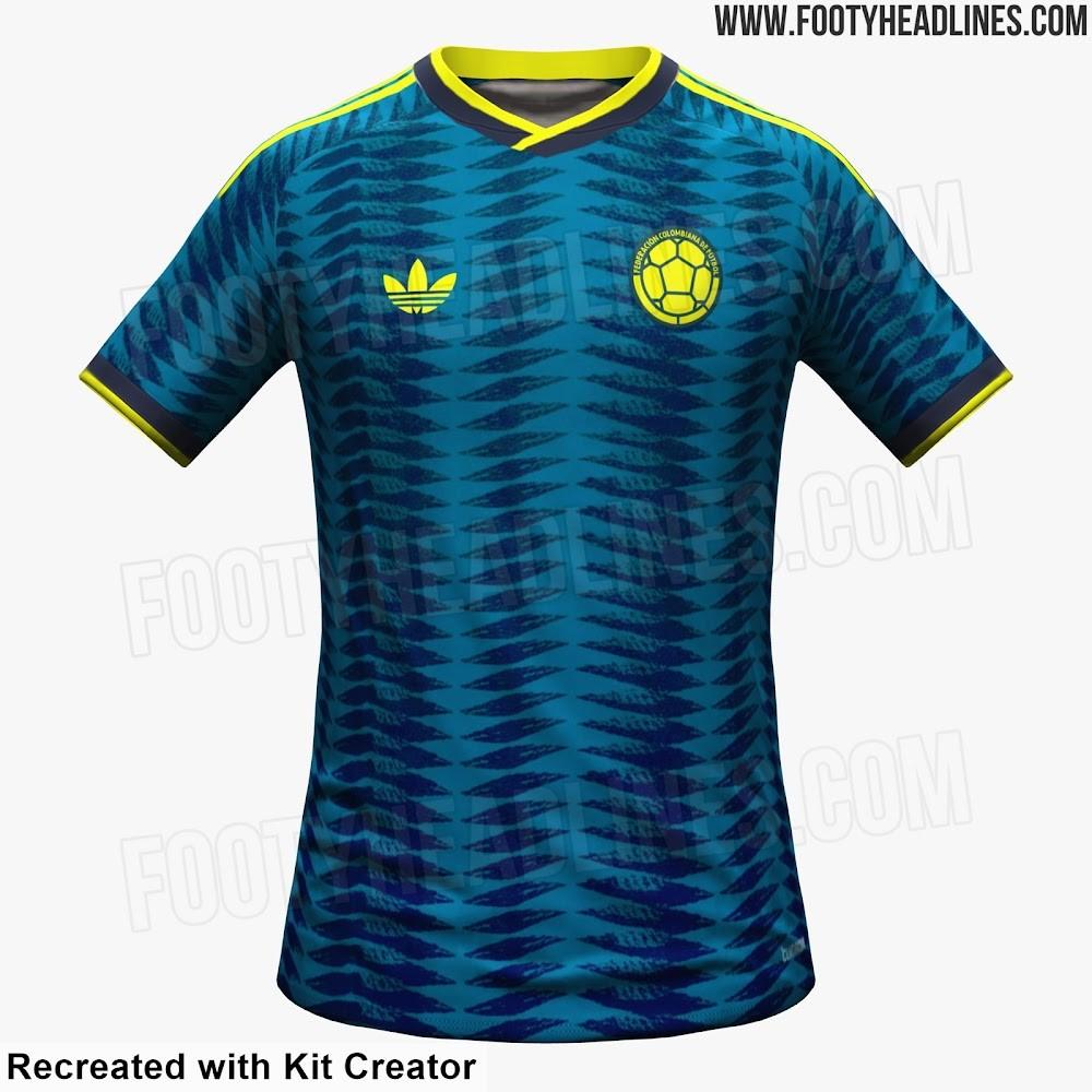 阿迪達斯爲哥倫比亞打造的2026世界盃客場球衣以“Team Navy Blue”(深海軍藍)爲主色,配以類似羽毛狀的圖案設計。有哥倫比亞媒體認爲圖案靈感來自於作家所使用的羽毛筆,《百年孤獨》封面上也曾使用過該圖案。徽標部分則採用哥倫比亞標誌性的亮黃色,形成鮮明對比。