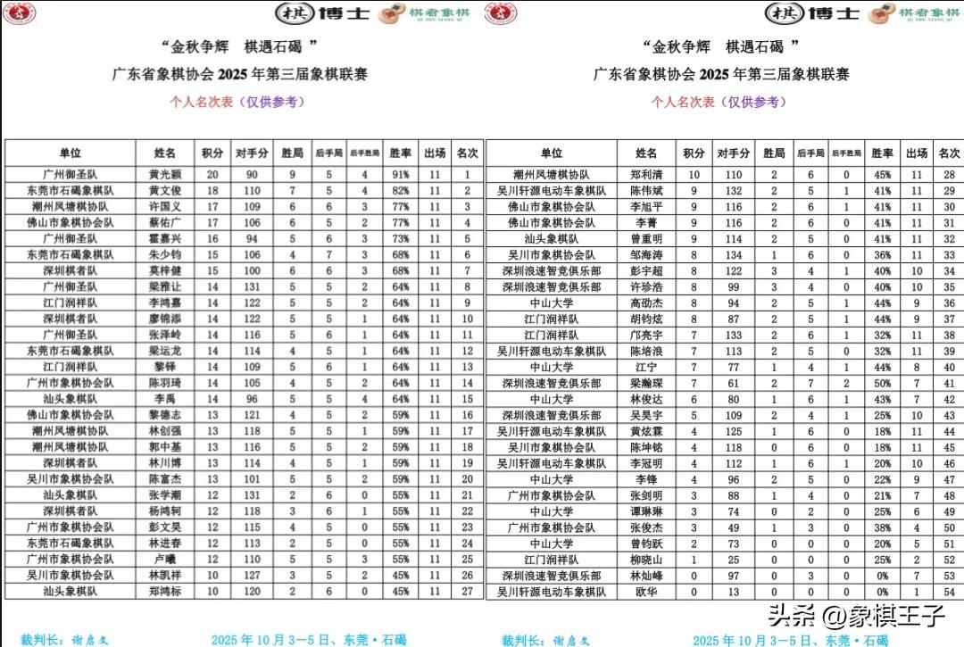 個人得分石碣隊黃文俊第二,潮州隊許國義第三,佛山隊蔡佑廣第四,石碣隊朱少鈞第六,棋者隊莫梓健第七,潤祥隊李鴻嘉第九,棋者隊廖錦添第十,石碣隊梁運龍第十二。