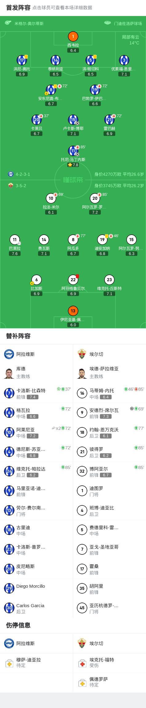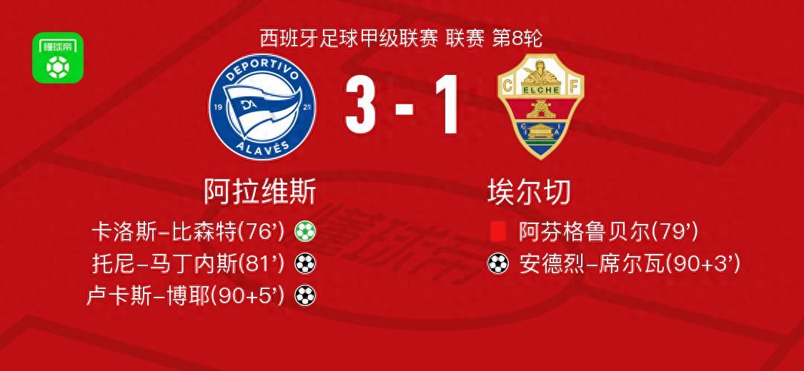 阿拉維斯3-1埃爾切,盧卡斯-博耶破門,託尼-馬丁內斯建功