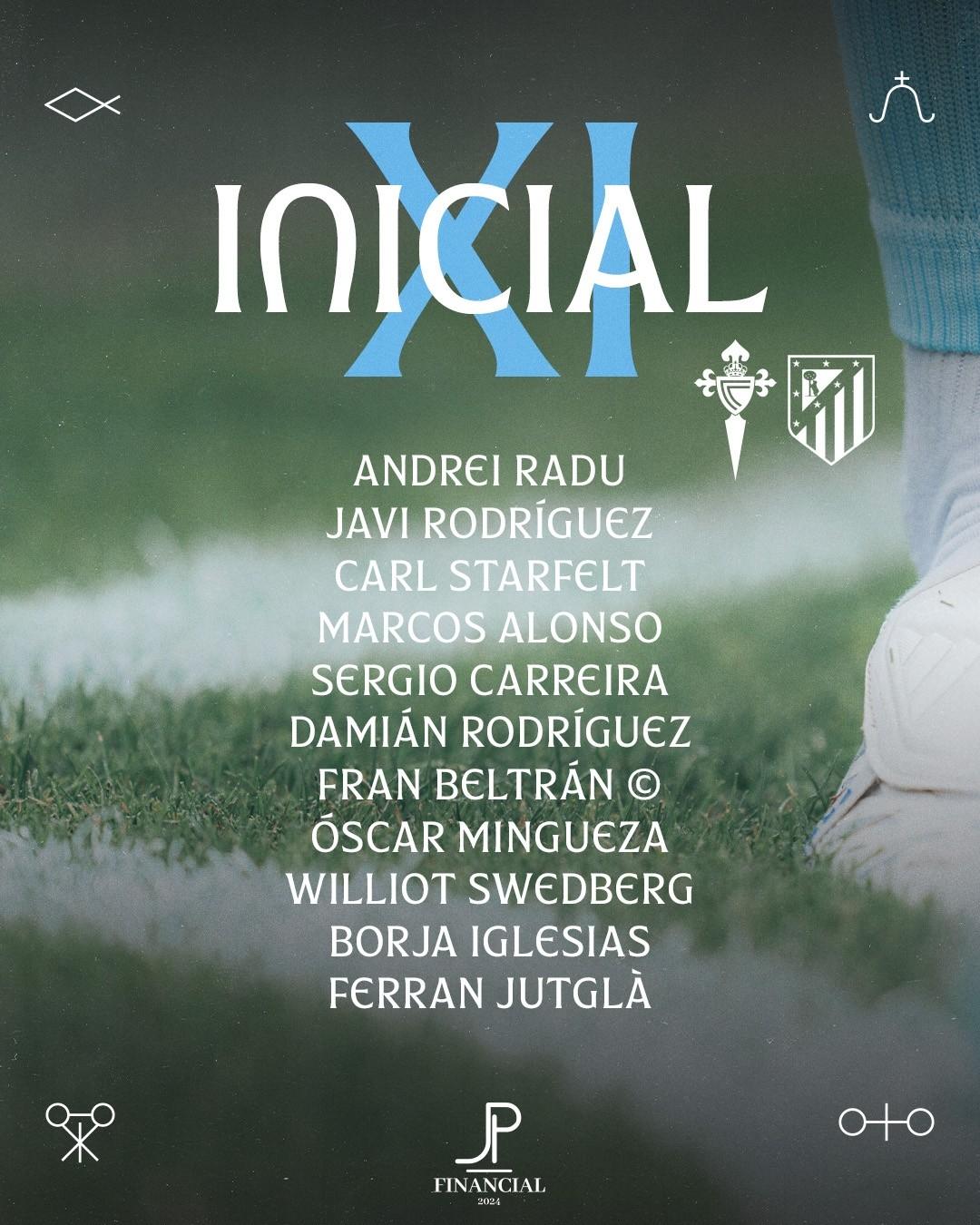 塞爾塔首發:13-拉杜、20-馬科斯-阿隆索、2-斯塔費爾特、32-哈維-羅德里格斯、3-明格薩、8-貝爾特蘭、14-達米安-羅德里格斯、5-卡雷拉、9-胡特格拉、19-斯韋德貝里、9-伊格萊西亞斯