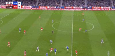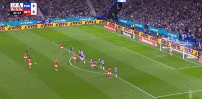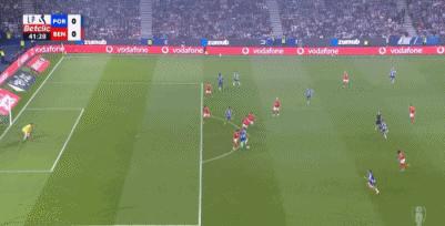 第34分鐘,佩佩禁區無人防守抽射打門,皮球一腳踢高