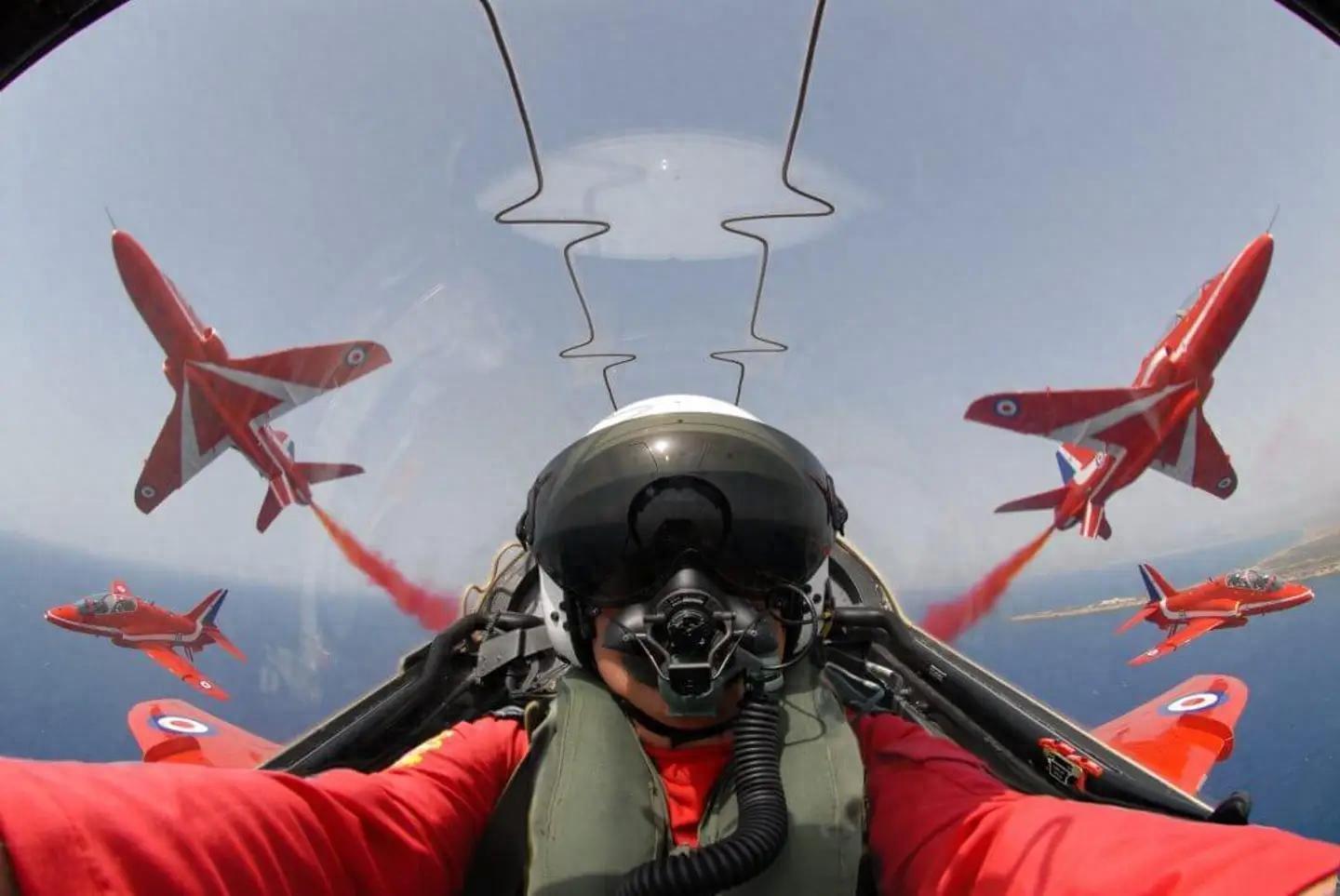 休斯曾是“紅箭”的九名飛行員之一。每個團隊成員都需要在皇家空軍擁有至少1500小時的飛行經驗,才能被視爲出色的飛行員。