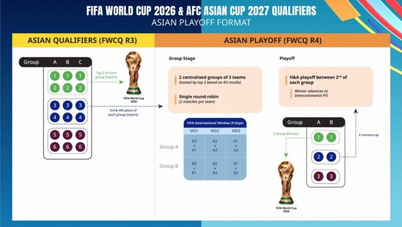 亞洲區第四階段的比賽將集中進行,其中卡塔爾是A組的主辦國,沙特是B組的主辦國。