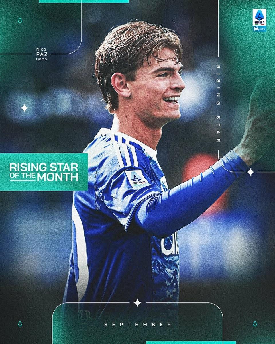 意甲官方宣佈,科莫中場尼科-帕斯獲得了9月份新星獎(最佳U23球員獎)。頒獎儀式將於2025年10月19日科莫主場對陣尤文圖斯賽前進行。
