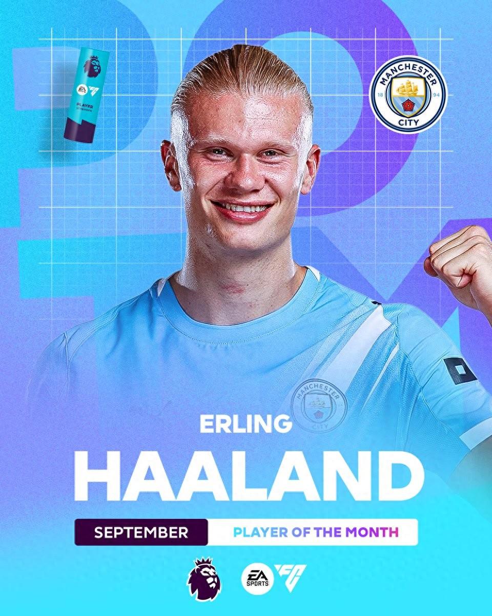 北京時間10月10日,英超官方發佈公告,宣佈哈蘭德當選9月最佳球員。