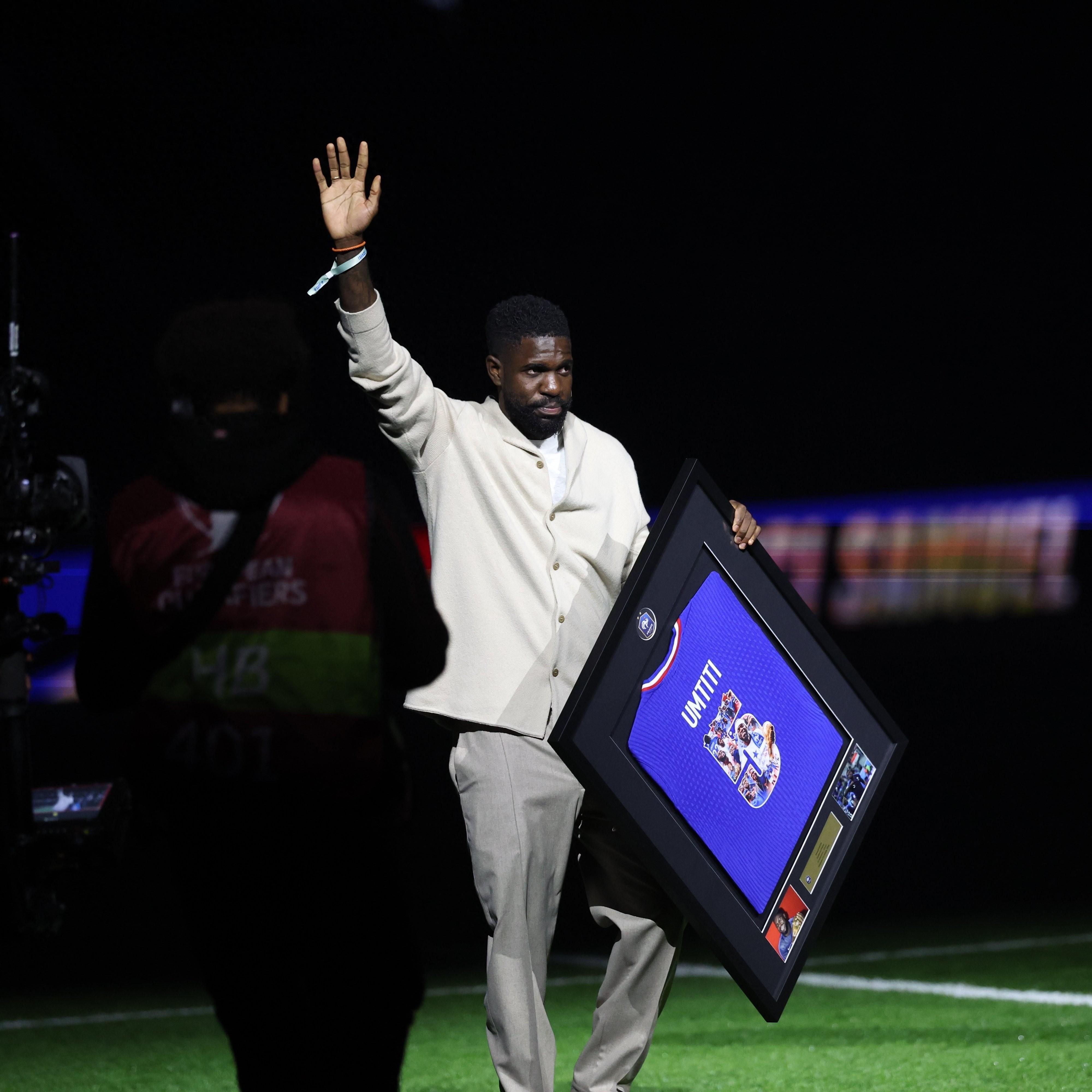 法國在對陣阿塞拜疆的2026年世界盃預選賽開賽前,爲剛剛宣佈退役的烏姆蒂蒂送上了溫情告別。