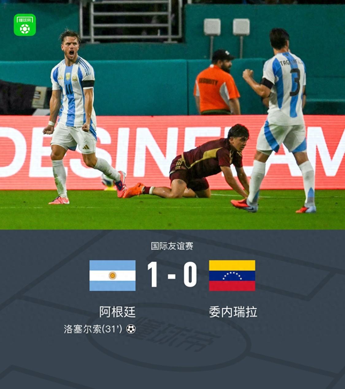 阿根廷1-0委內瑞拉,洛塞爾索制勝,勞塔羅送助攻+屢失良機