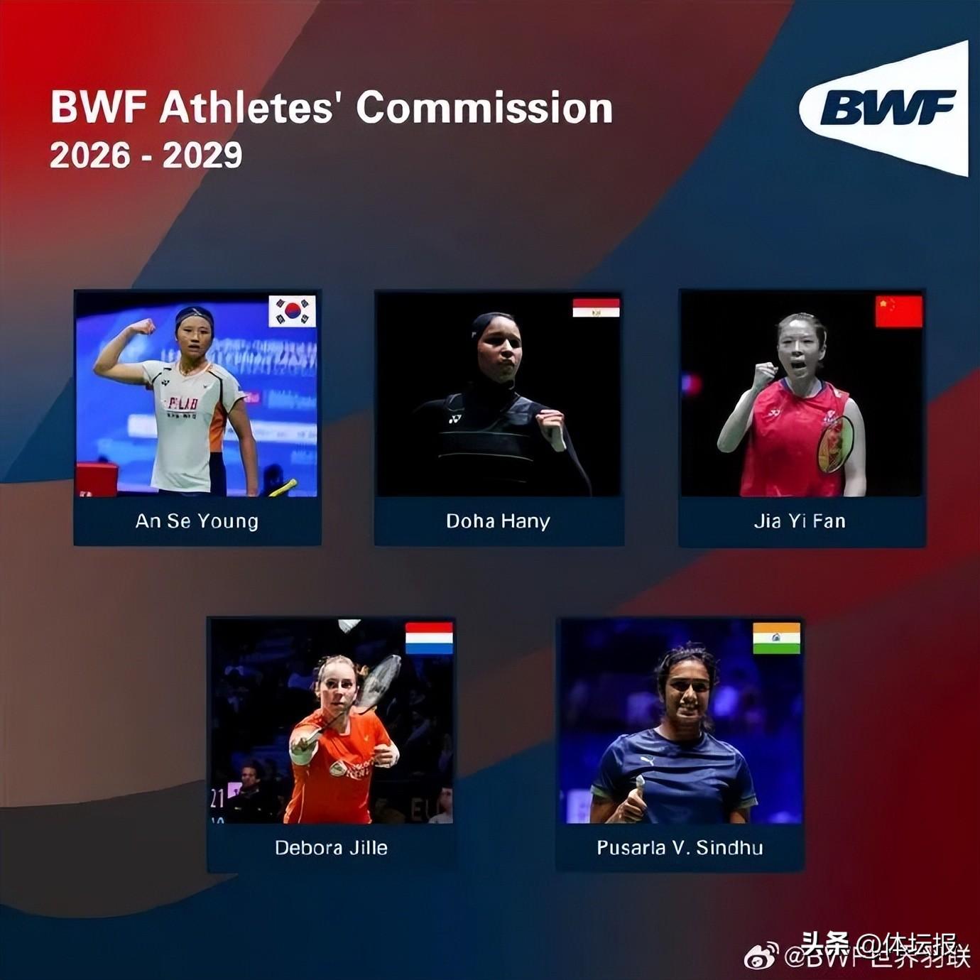 BWF世界羽聯宣佈2026–2029任期新一屆世界羽聯運動員委員會成員。以下五名運動員將代表全球羽毛球運動員羣體:安洗瑩(韓國)、多哈·哈尼(埃及)、賈一凡(中國)、黛博拉·吉利(荷蘭)、普薩拉·文卡塔·辛杜(印度)。