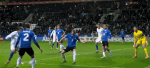 第4分鐘,迪馬爾科斜塞,基恩擺脫防守推射破門!愛沙尼亞0-1意大利
