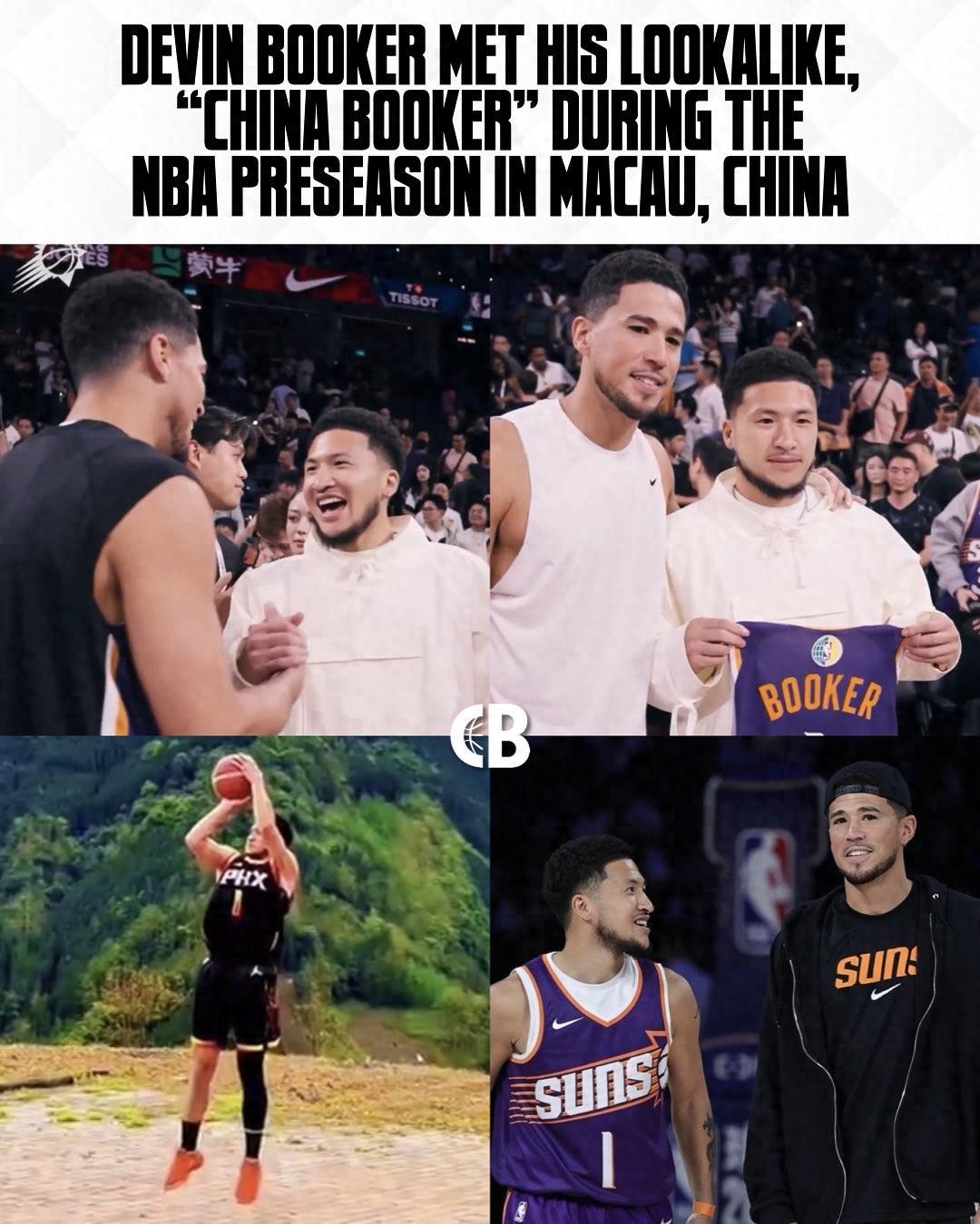 中國布克此前以模仿布克聞名,他的視頻也在海外得到關注。他在外形、籃球技術特點上充分模仿布克,他也在這次見面中得到了布克本人的認可。