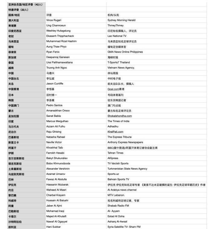 《體壇週報》2025年亞洲金球獎評委名單如下