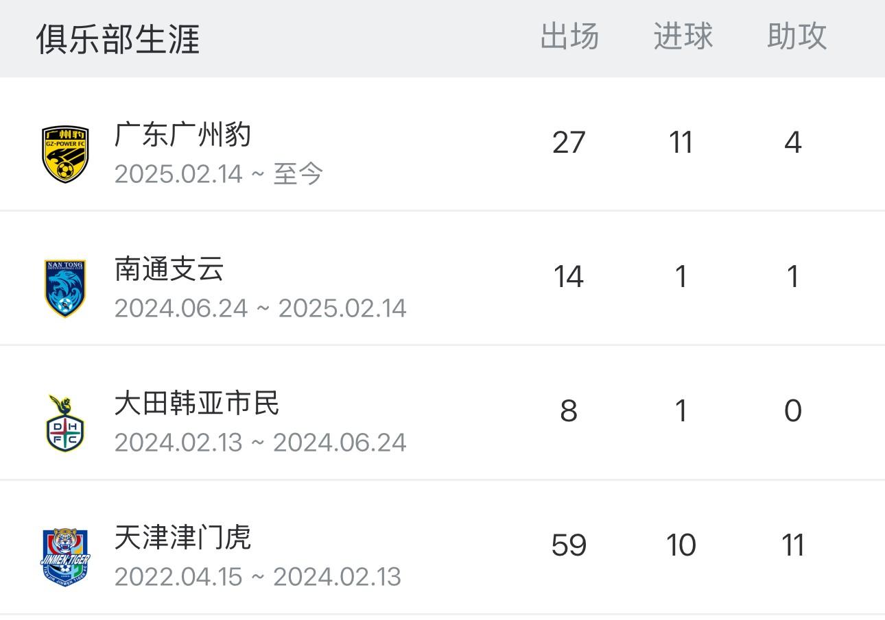 2025賽季至今,羅薩已經代表廣東廣州豹出場27次,斬獲11粒進球和4次助攻。