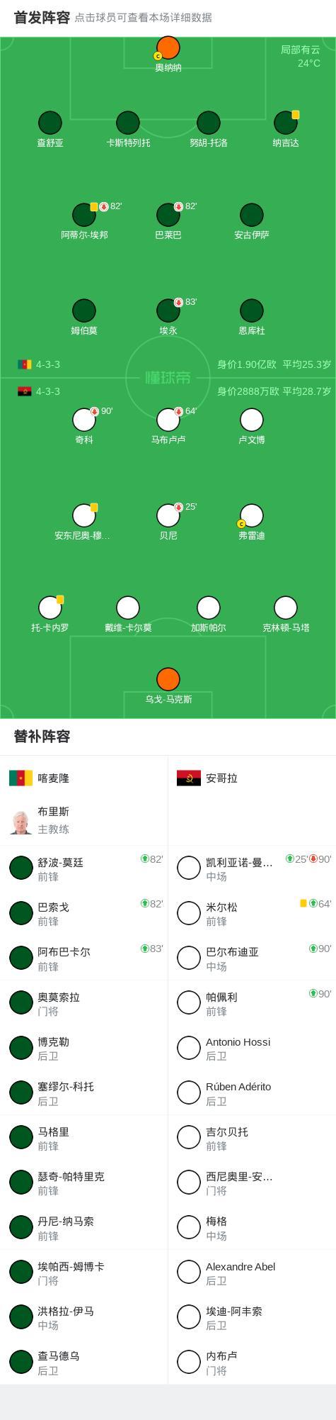 喀麥隆0-0安哥拉進入附加賽,穆安扎、盧文博射門中框