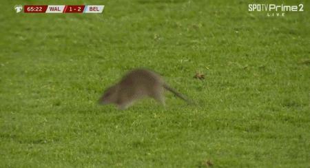 小插曲,威爾士對比利時的世預賽中有老鼠入場短暫干擾了比賽