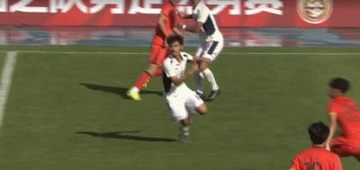 第45+2分鐘,劉浩帆肘部擊中對手,喫到黃牌,雙方球員隨後發生衝突