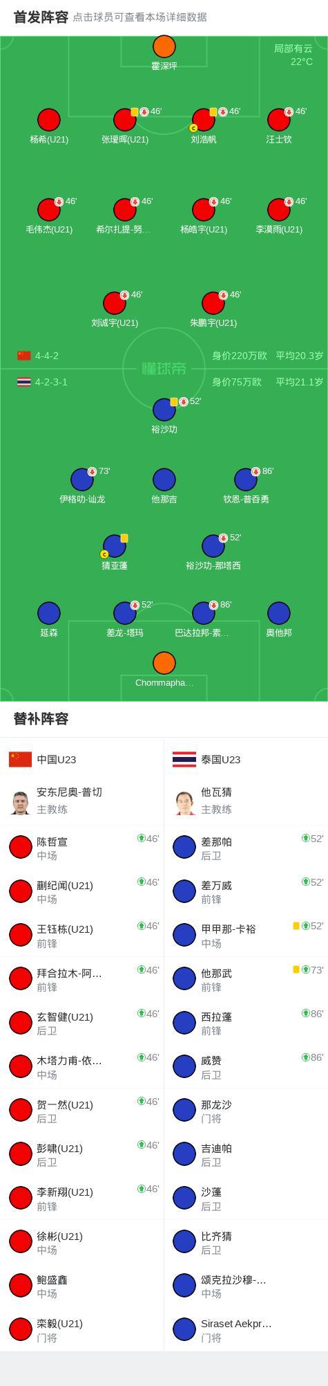 U23國足0-0泰國U23,友誼賽兩戰對手1勝1平,劉誠宇中柱