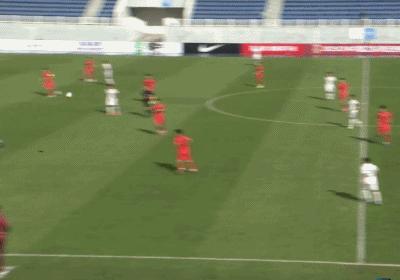 第50分鐘,王鈺棟傳球,拜合拉木做球,蒯紀聞凌空射門打高