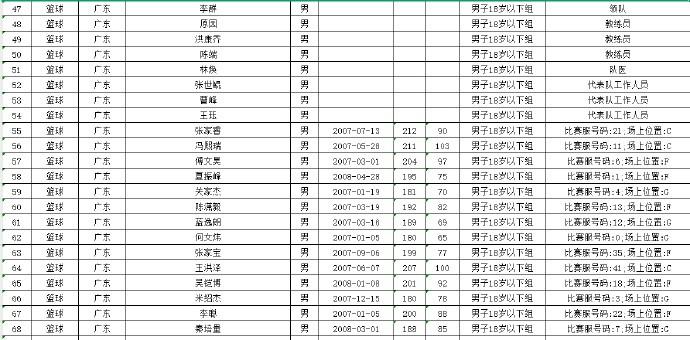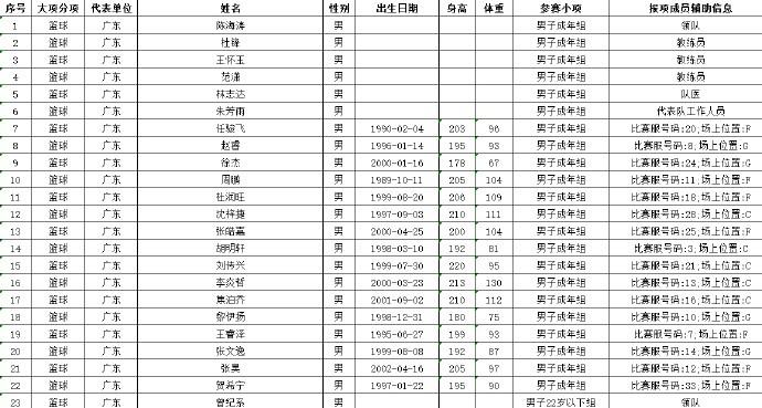 廣東男籃名單中,領隊、教練組、工作人員均出自廣東宏遠俱樂部。