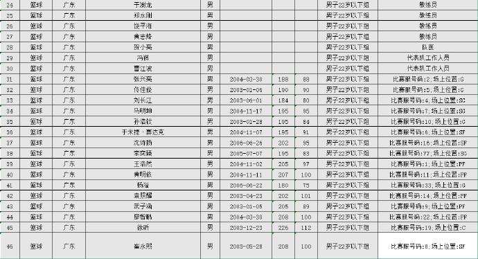 崔永熙則出現在了廣東男籃男子22歲以下組中。