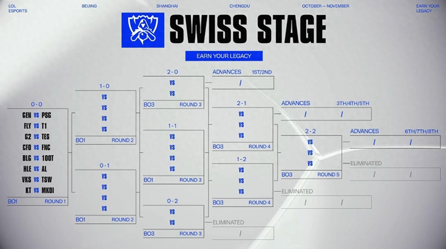 S15世界賽瑞士輪第一日抽籤:AL遭遇HLE,TES對戰G2