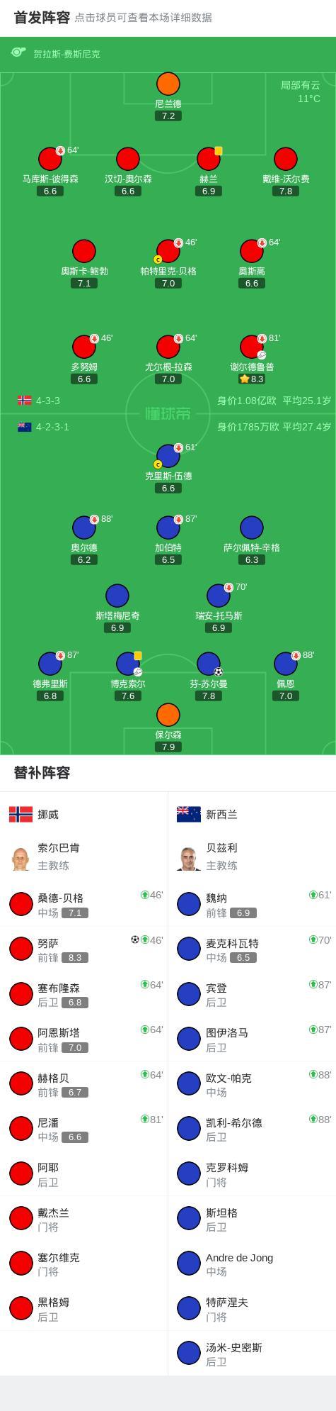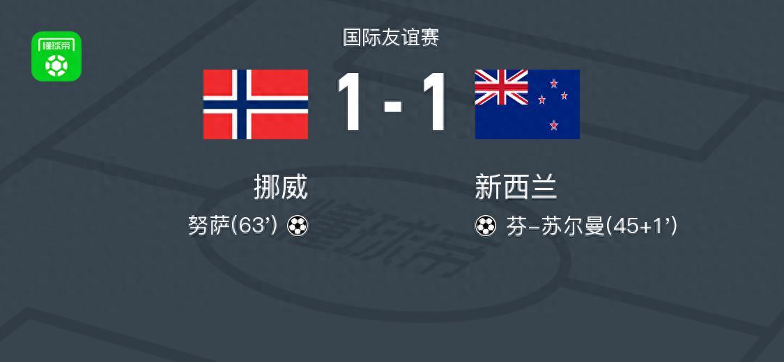 挪威1-1新西蘭,芬-蘇爾曼先拔頭籌,努薩扳平