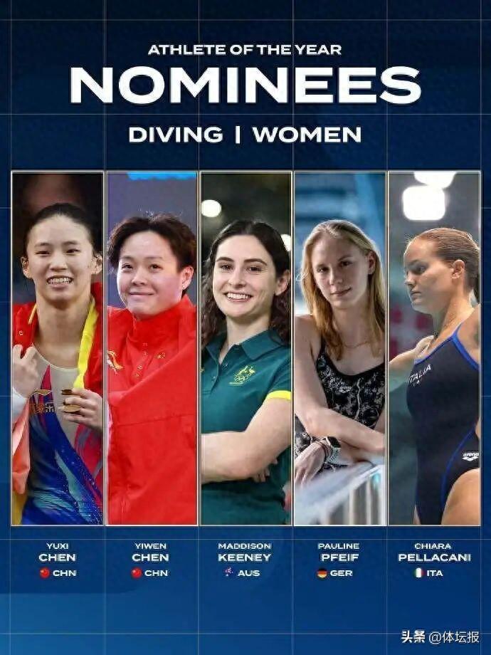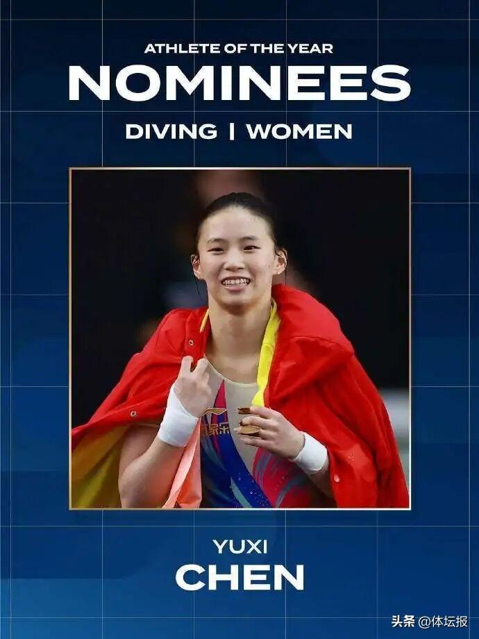 10月14日,世界泳聯公佈年度最佳女子跳水運動員候選名單,兩位中國選手陳芋汐、陳藝文入圍。此外,候選名單中還包括澳大利亞選手麥迪森·基尼、德國選手保利娜·普法伊夫和意大利選手基婭拉·佩拉卡尼。本次評選將通過公衆投票和委員會投票相結合的方式評出年度最佳運動員。