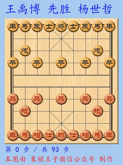 其中,兩位強星王禹博、楊世哲的廝殺,王禹博執紅棋以過宮炮對起左馬陣,對黑方城內,進行了全速的圍攻。