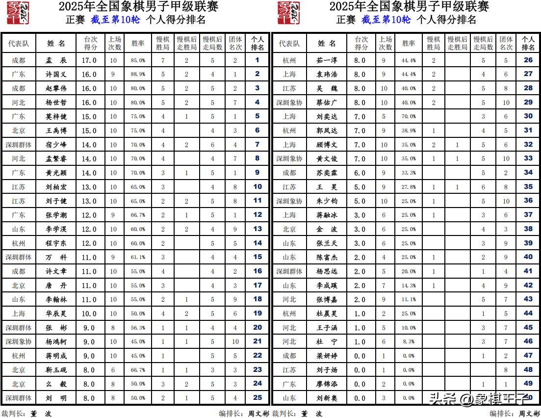 2025全國象甲的大戰,第二階段已經接近尾聲,各支隊伍的排位,再次進行新的變動,三雄爭鬥格局漸漸形成。