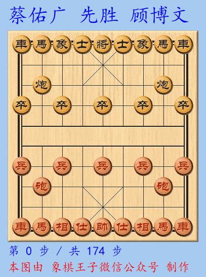 十虎中金馬車,虎隊領袖級戰將蔡佑廣執紅棋對上五羊杯殿軍顧博文,兩人在中炮先進三兵對左三步虎陣中,展開猛烈的糾纏。