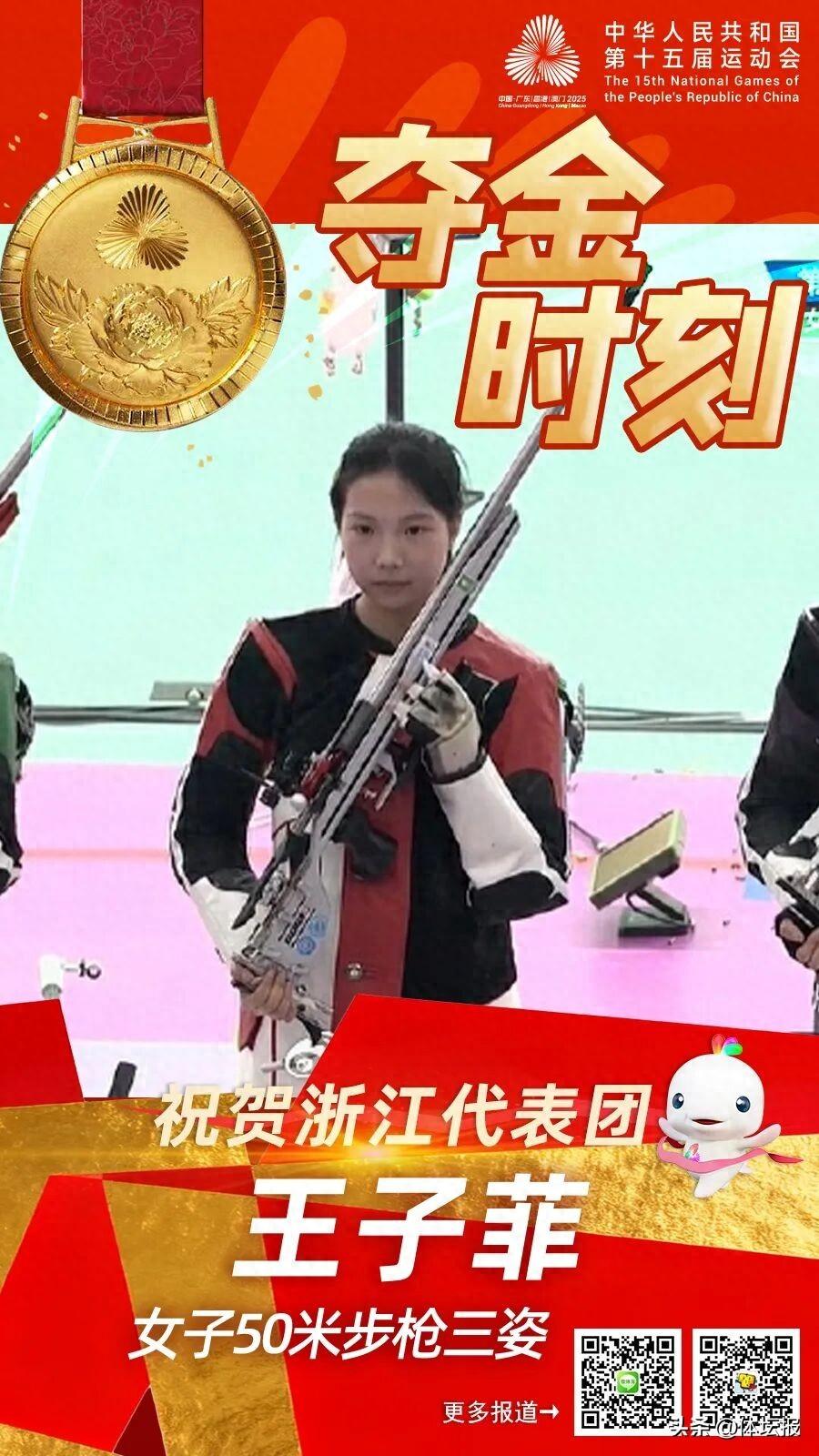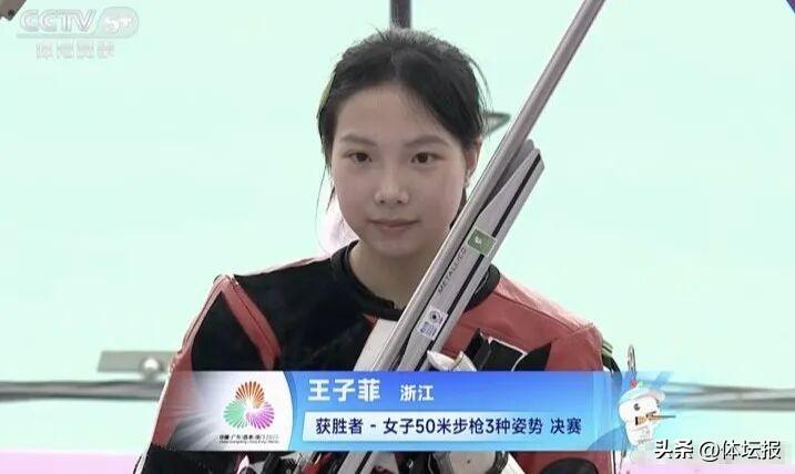 在上午結束的女子50米步槍三姿資格賽中,兩位浙江姑娘韓佳予和王子菲分別以總成績第一和第三晉級決賽。決賽中,18歲的杭州姑娘王子菲從第7一路狂追,最後以462.9環的成績奪得金牌。