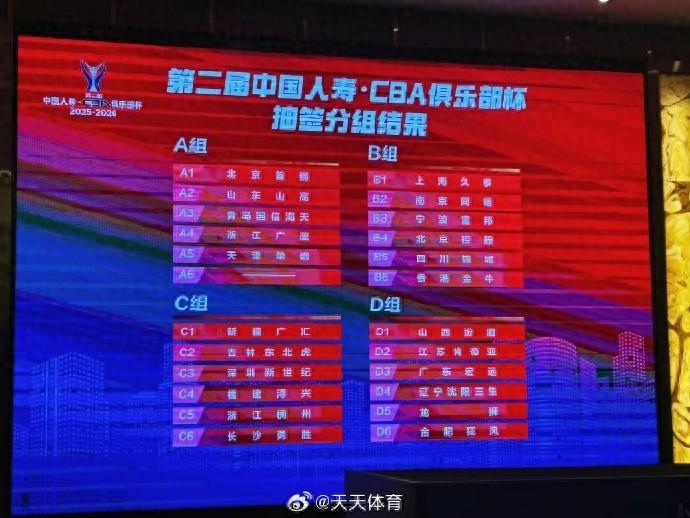 CBA俱樂部杯抽籤:A組重演總決賽對決,D組再現遼粵大戰
