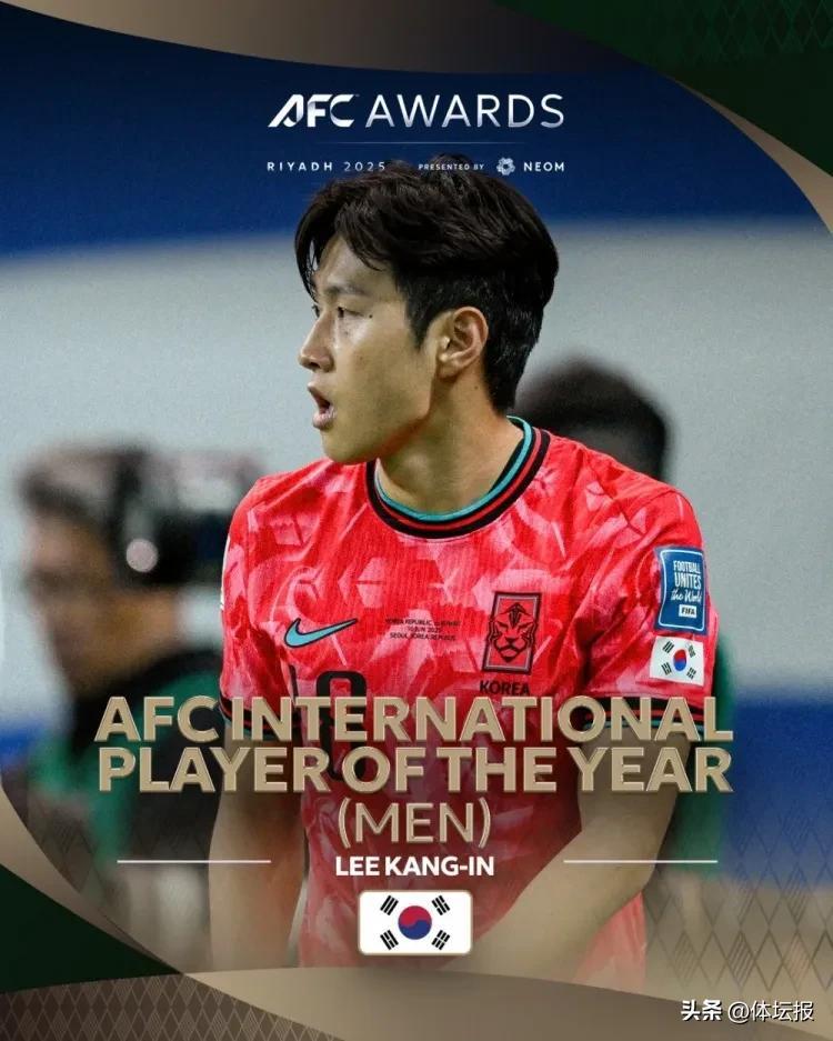 韓國球員李剛仁當選亞足聯年度亞洲最佳海外球員。