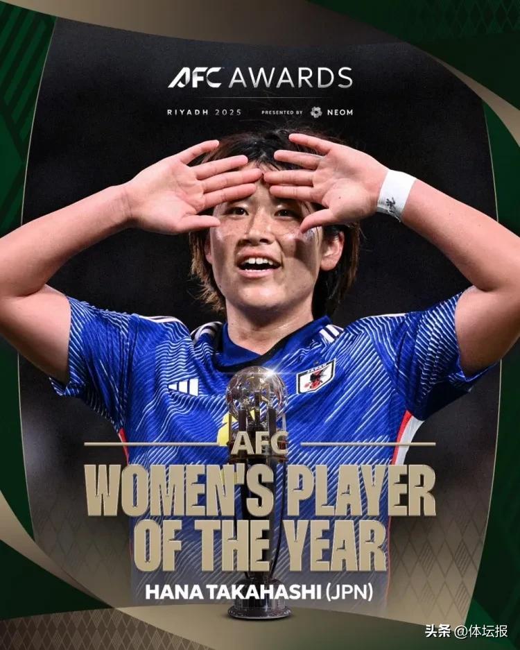 日本球員高橋花當選亞足聯年度最佳女足球員。