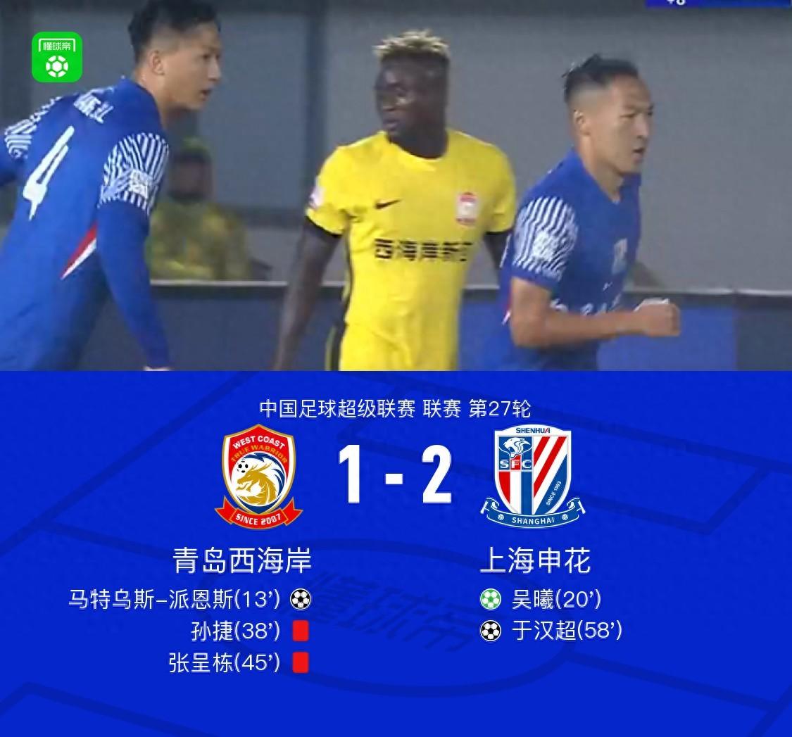 北京時間10月17日,中超聯賽第27輪展開角逐,青島西海岸坐鎮主場迎戰上海申花。上半場,馬特烏斯頭球破門先拔頭籌,吳曦點射扳平比分。孫捷對於漢超犯規喫到紅牌,張呈棟不滿判罰也喫到紅牌;下半場,于漢超頭球破門反超比分,李昊連續撲救力保城池。最終,上海申花客場2-1逆轉9人作戰的青島西海岸。