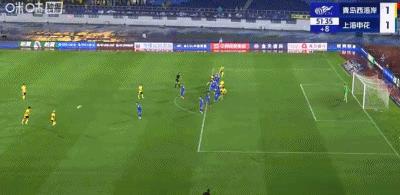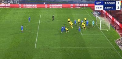 第58分鐘,老將發威!于漢超頭球破門,申花2-1領先西海岸